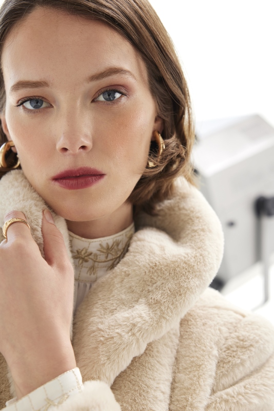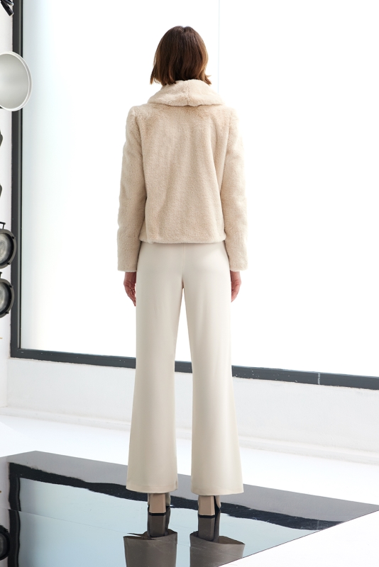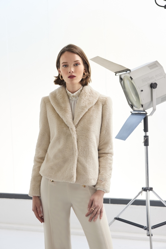 Bonita chaqueta de pelo, muy actual y moderna. Lleva una sencilla solapa y el largo es ideal para acompañarla con un vestido o traje con el que quieras brillar. Un complemento ideal para el tiempo otoñal. De la firma de CARLA RUIZ.