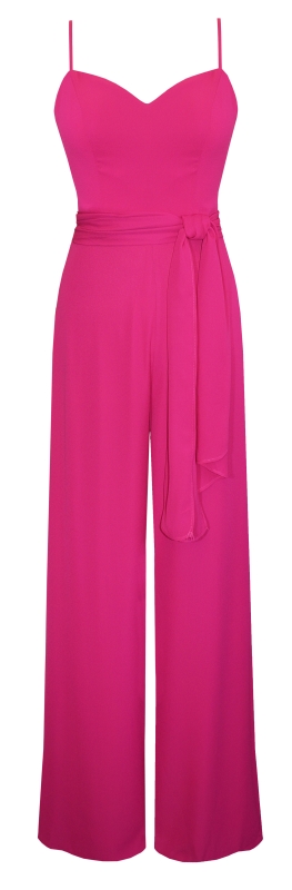 Mono palazzo en color liso y con un cinturón. Muy sencillo y estiloso para ir de fiesta a cualquier evento.