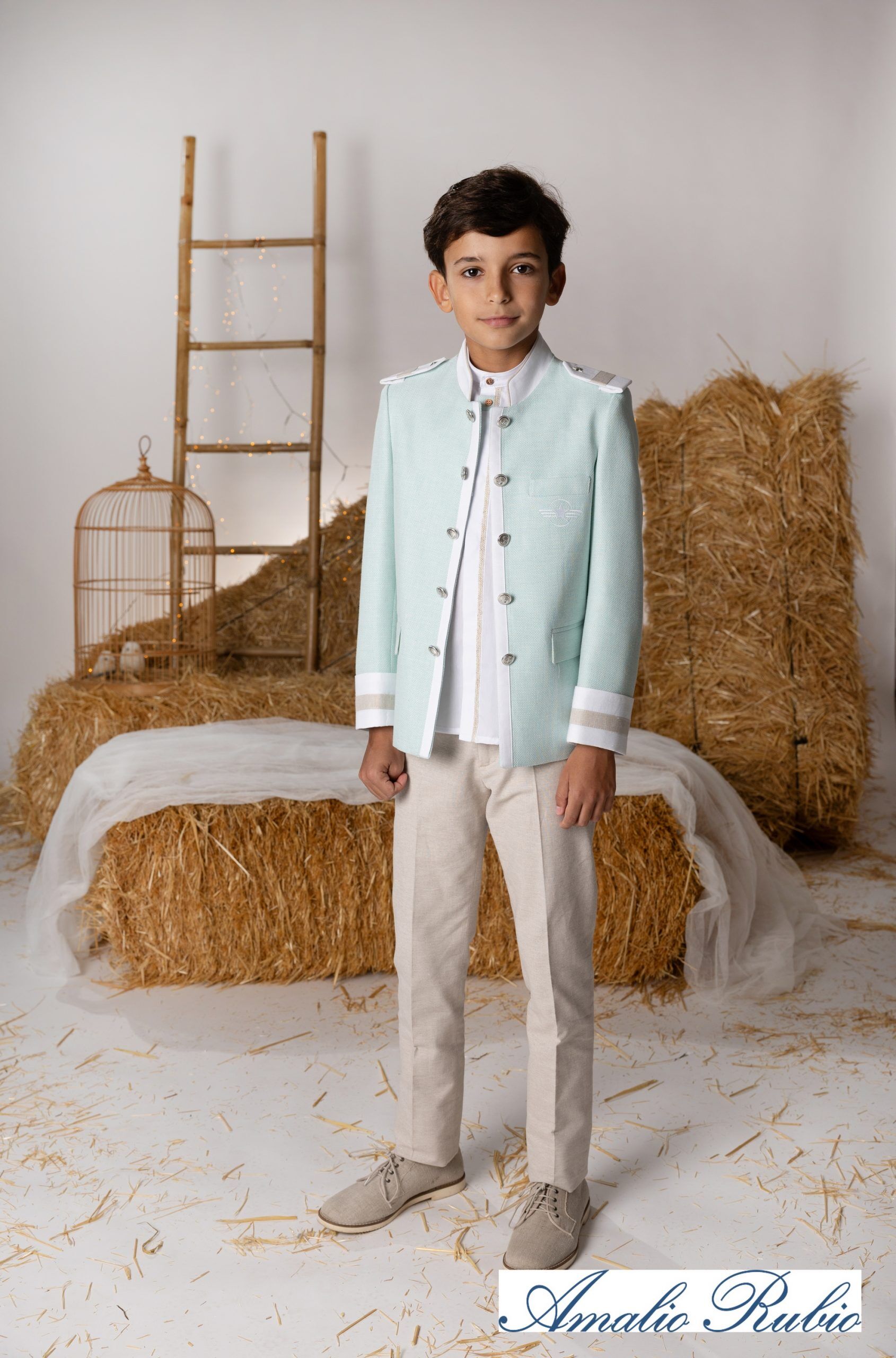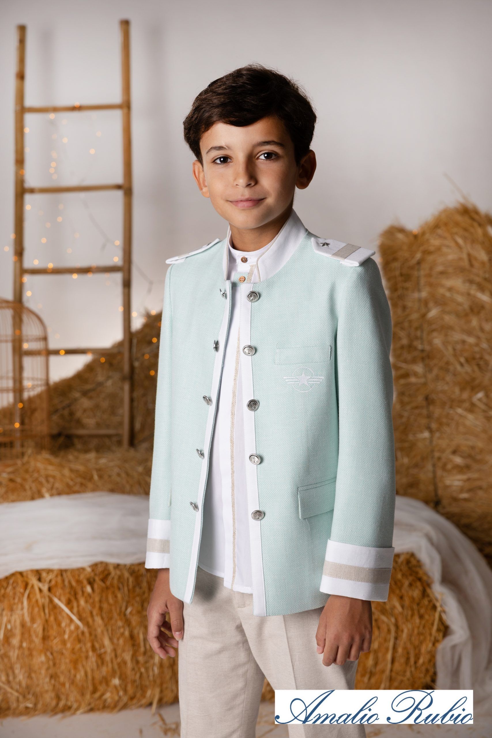 Conjunto de chaqueta y pantalón confeccionado y diseñado por la marca española Amalio Rubio.