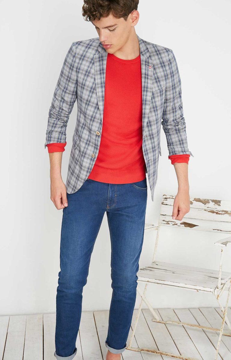 Americana de Florentino de cuadros en tonos azules claros con tostado. Muy ponible para comuniones. Es un aprenda con una imagen muy moderna.