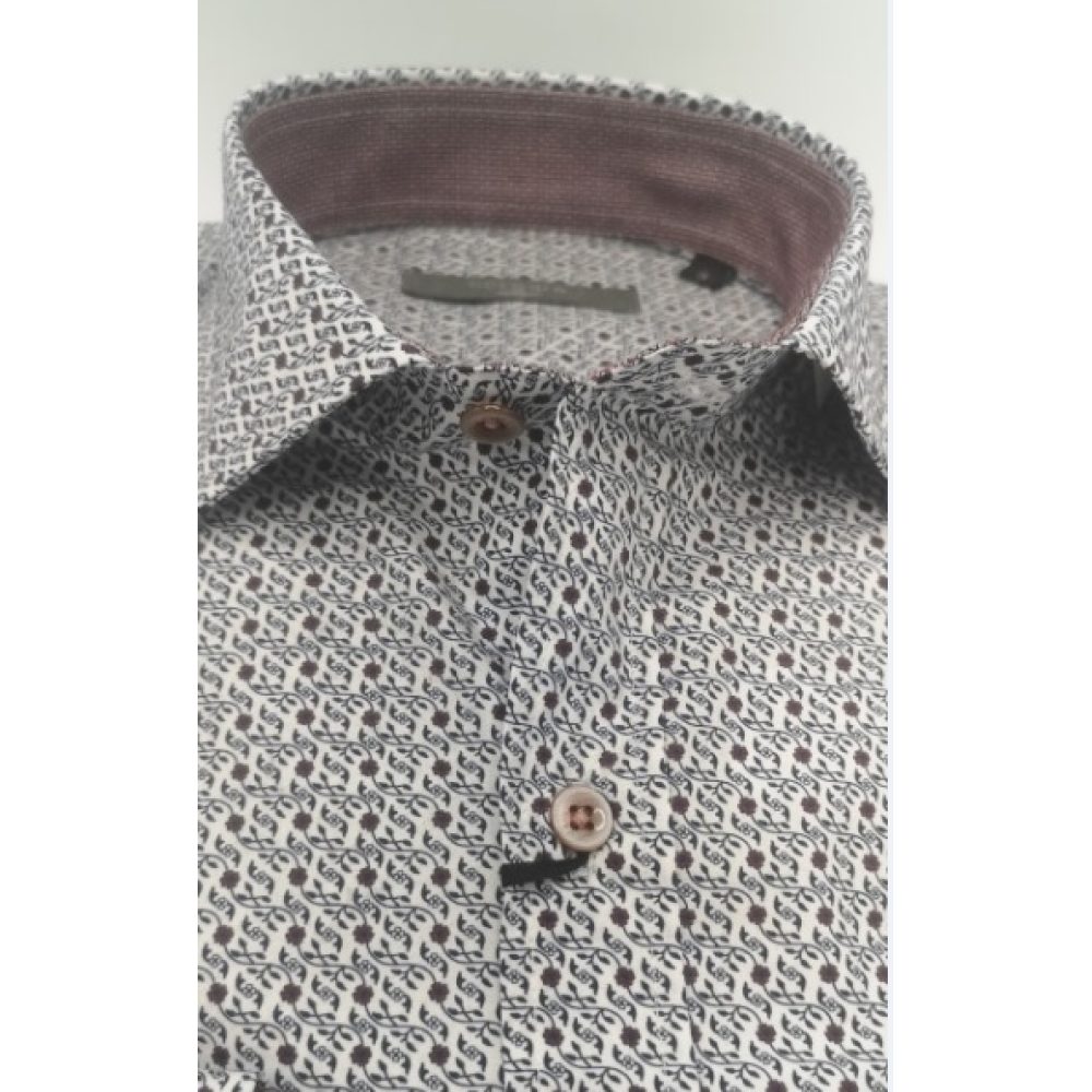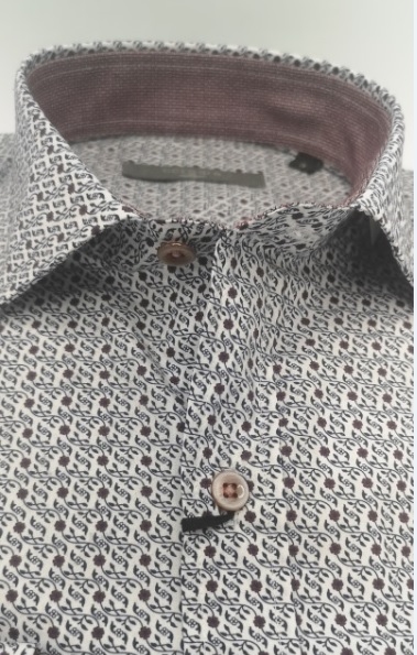 Camisa entallada con interiores de cuello y puños en microdibujo azul y granate.