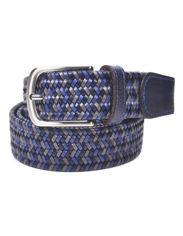 Cinturón de hombre de piel vacuna en color marrón con acabados en azul