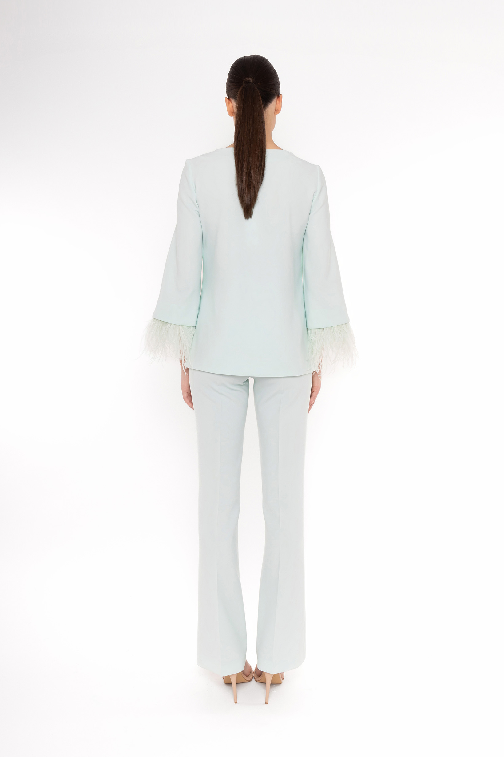 CONJUNTO BLUSÓN Y PANTALÓN CON PLUMAS