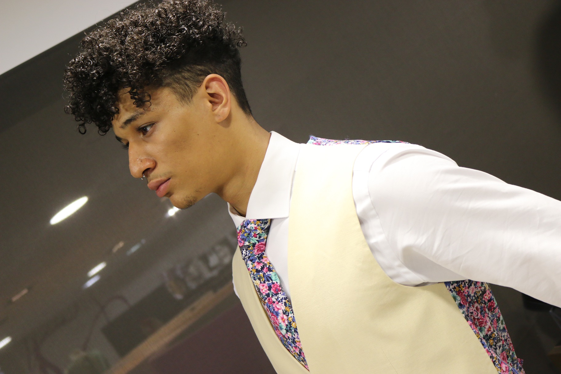 Chaleco, ideal para cualquier evento que se preste a señalar la elegancia. Destaca la parte de la espalda con estampado floral.