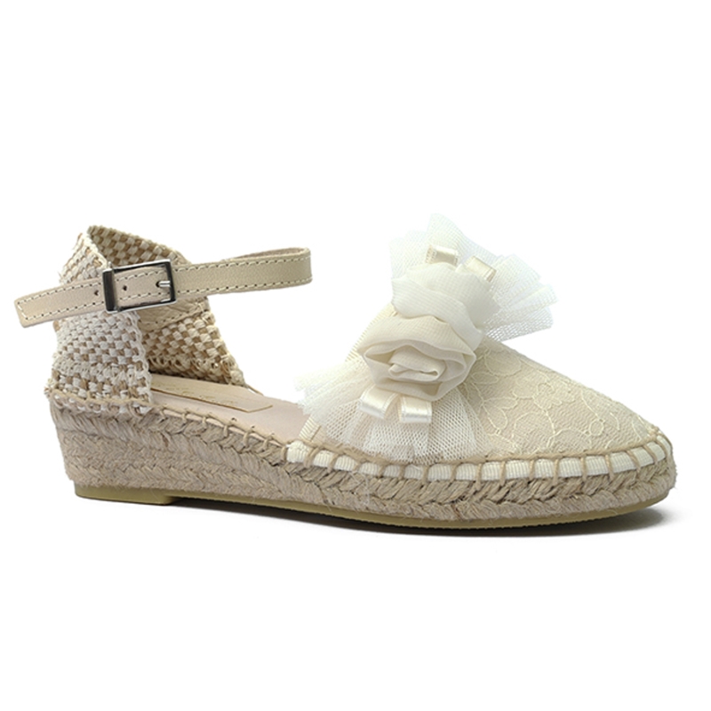 Alpargatas en esparto con lona en marfil. Diseñado y confeccionado en España. Un calzado muy bonito para los vestidos románticos de comunión.