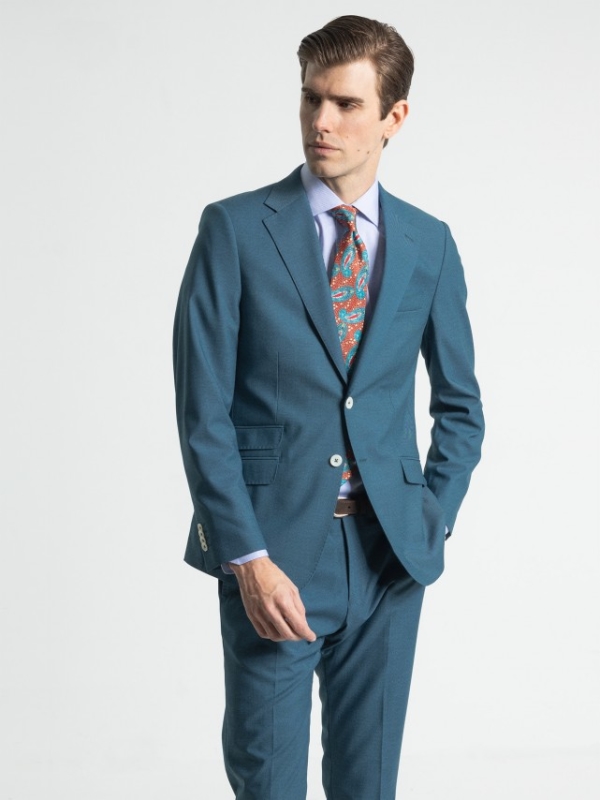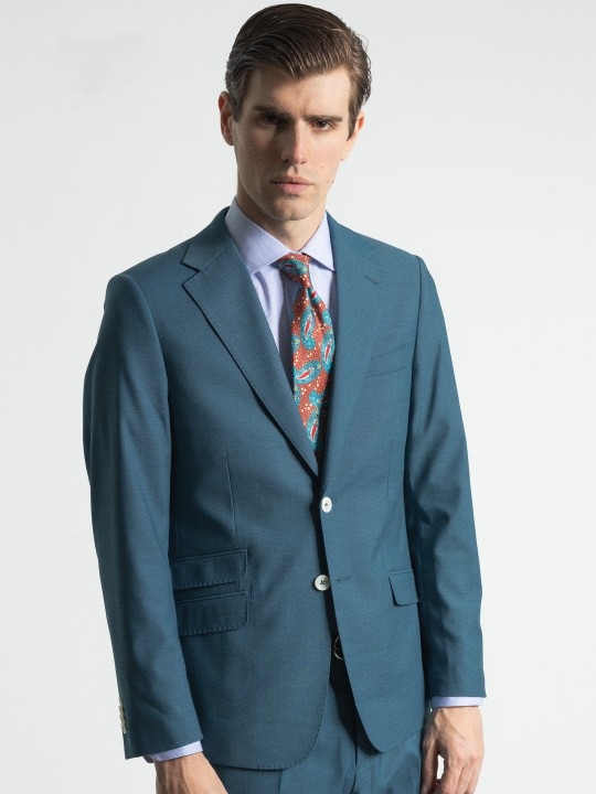Línea Tailored. Corte slim fit. Diseño mil puntos agua marina.