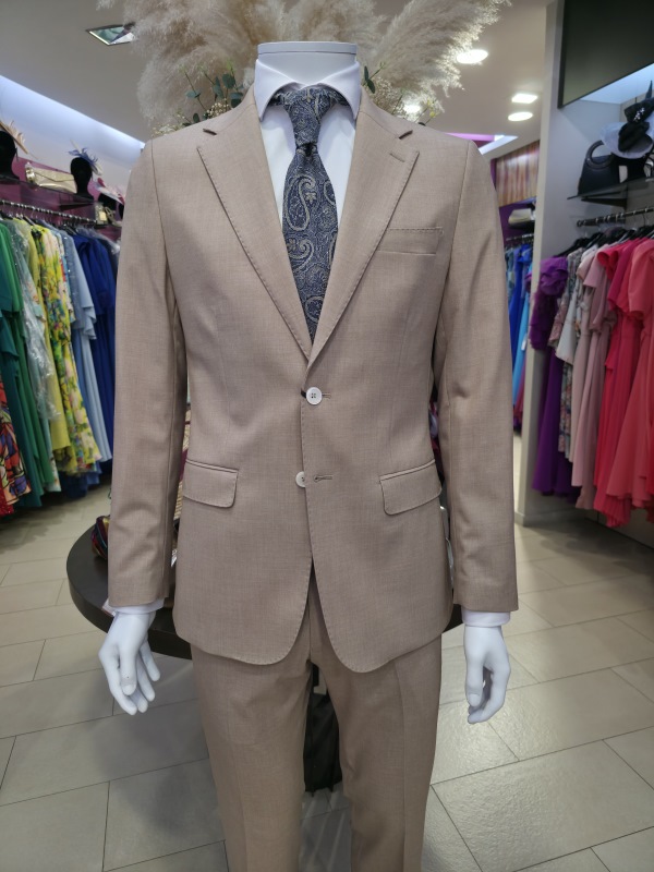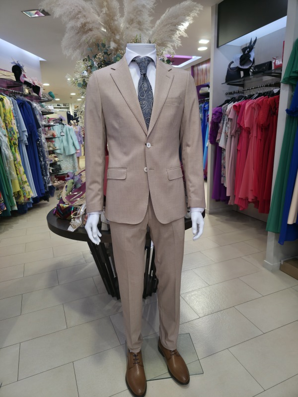 Línea Tailored. Corte slim fit. Diseño falso liso marrón medio.