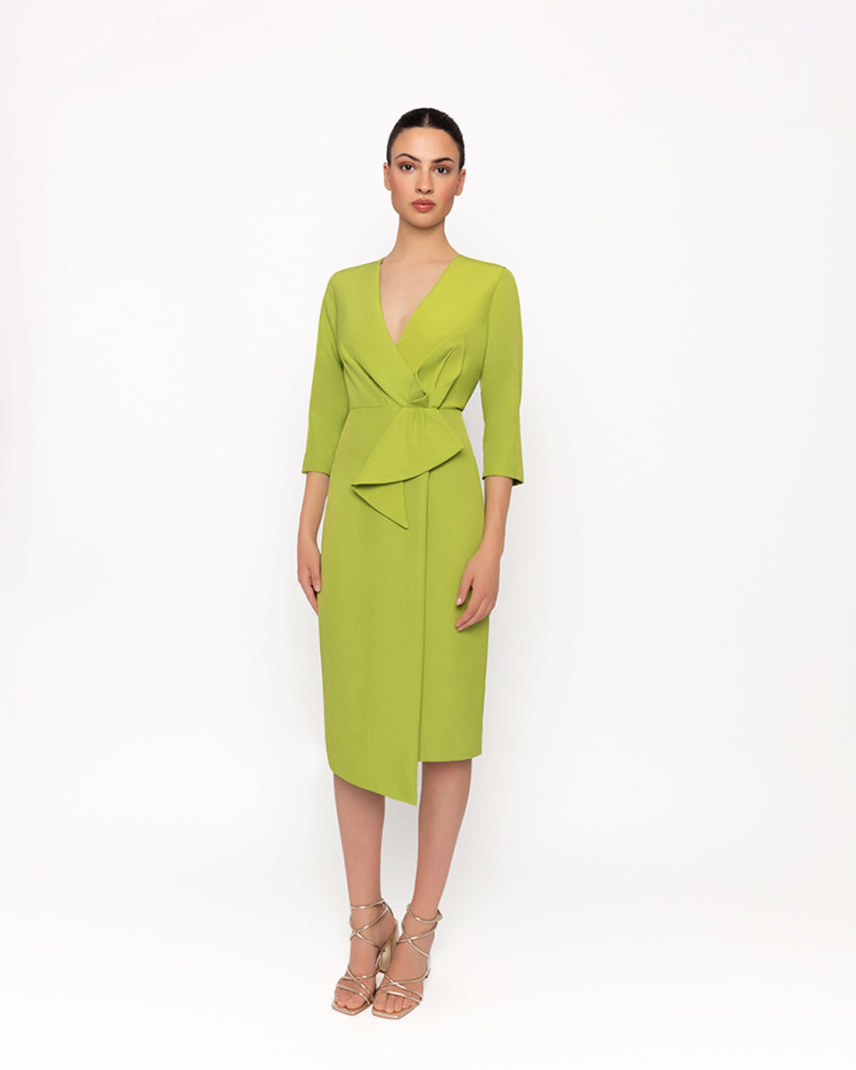 VESTIDO MIDI ENTALLADO ASIMÉTRICO