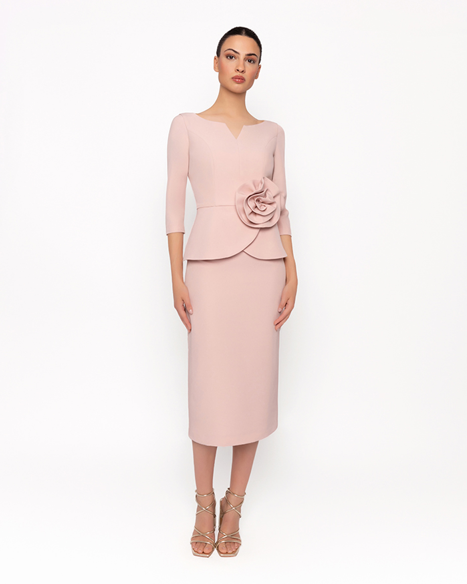 VESTIDO MIDI CON PEPLUM