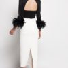 VESTIDO MIDI EN CREPE CON PLUMAS