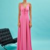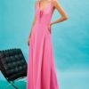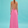 Asombroso vestido largo de fiesta, confeccionado en crepe. Lleva un escote en V anudado con lazadas muy originales y la espalda descubierta hasta la cintura con tiras. Un modelo super juvenil y sexy. De la firma de J.ARGGIDO.
