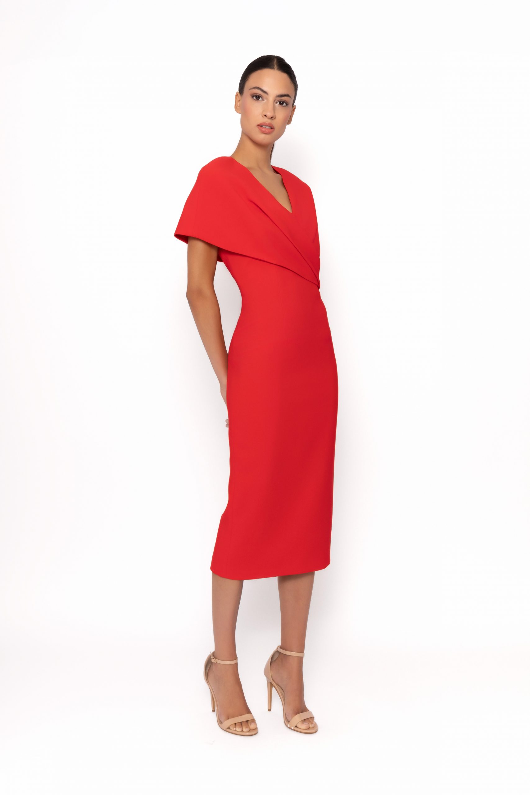 VESTIDO MIDI ESCOTE CAPA