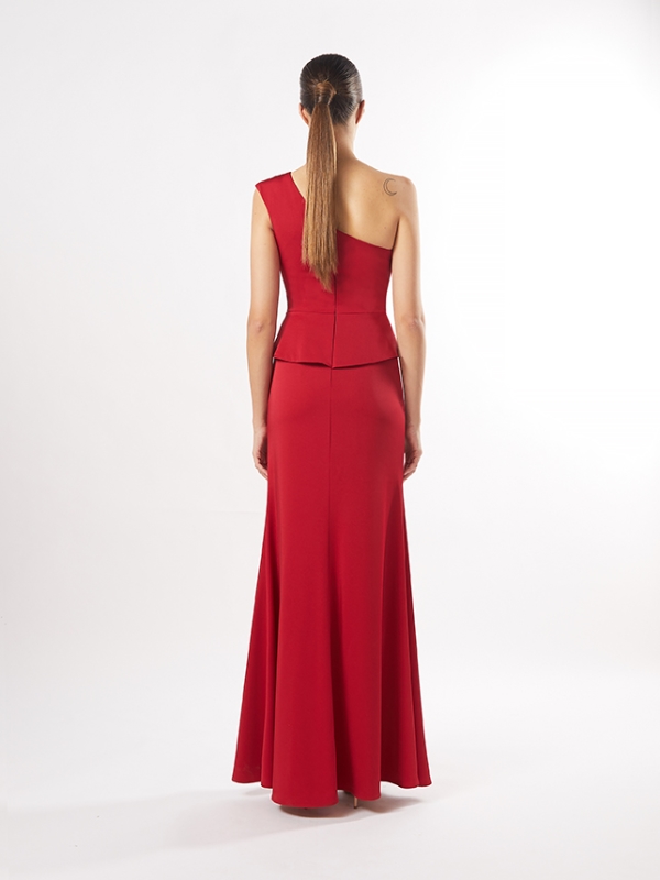 VESTIDO ASIMÉTRICO CON PEPLUM