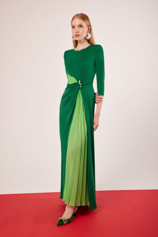 VESTIDO MADRINA DE GASA PLISADO SOLEIL