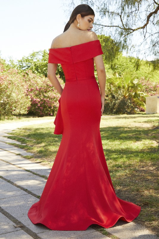 Espectacular vestido largo de fiesta confeccionado en crepe. Lleva un bonito escote de corazón, unos tirantes anchos caídos hacia los hombros, una falda entallada con chorrera en la cintura. Un modelo sencillo y elegante para destacar en cualquier fiesta. De la firma de XYM.
