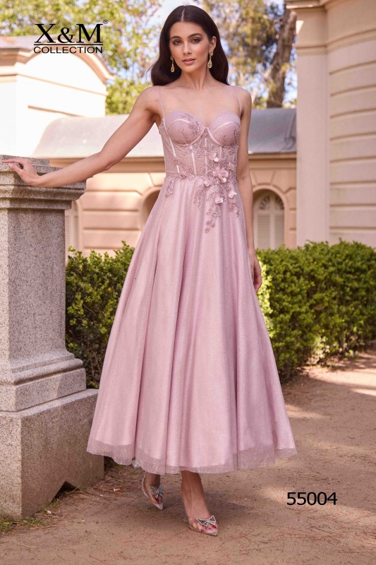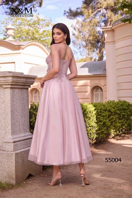 Excelente vestido midi de fiesta confeccionado en tul con brillantina. Lleva un cuerpo tipo corsé con ballenas con el que estiliza y moldea su figura, unos tirantes finitos y una falda con vuelo y tul debajo de la tela para armar más la falda. Un modelo lleno de encanto y juventud para aquellas personas que quieran destacar en cualquier evento. De la firma de X&M.