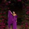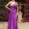 Asombroso vestido largo de madrina asimétrico, confeccionado en crepe. Lleva unos bonitos cristalitos en el tirante y en el recogido que lleva en la cintura. Un modelo que brilla por su elegancia y sencillez, con el que deslumbrarás en cualquier fiesta. De la firma de ALMA COUTURE.