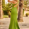 Asombroso vestido largo de fiesta confeccionado en crepé. Lleva un cuerpo asimétrico con un hombro descubierto y el otro con un tirante de plumas, su espalda hace una lágrima transversal muy sexy y juvenil. Su falda es estallada con una abertura lateral delantera. Un modelo muy juvenil y estiloso con el que brillarás en cualquier fiesta. De la firma de ALMA COUTURE.