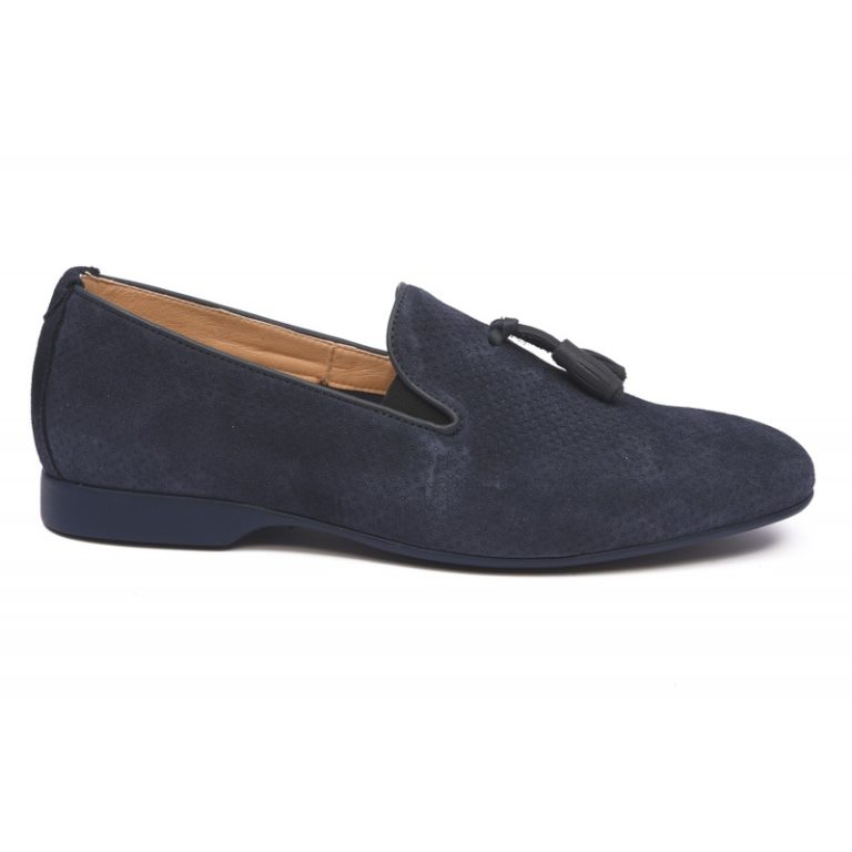 Mocasines de borlas y microperforaciones en la piel, de caballero. Fabricados en piel de serraje de alta calidad, forro textil y planta en piel. Incorpora elásticos en la embocadura para mayor comodidad. Suela de goma antideslizante. Hechos en España.