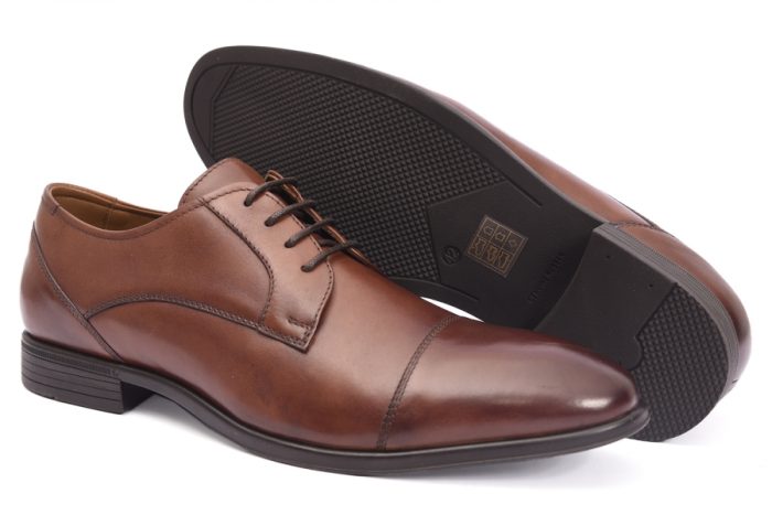 Zapatos de vestir de hombre, en piel de vacuno, con cierre de cordones y suela de caucho. BAERCHI «Hecho en España».