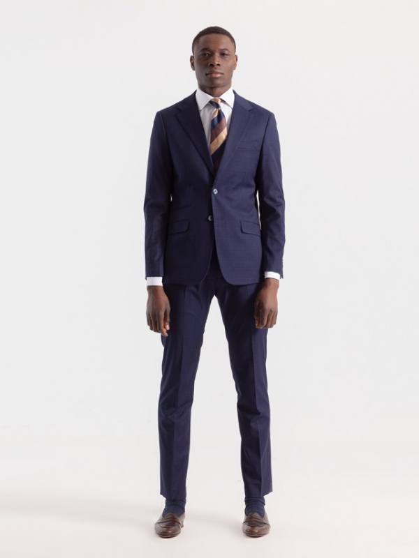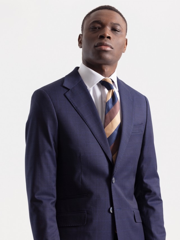 Línea Tailored. Corte slim fit. Diseño cuadro gales en marino.