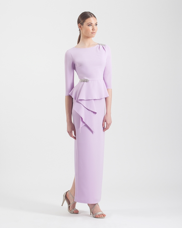 VESTIDO LARGO EN CREPE Y PEPLUM